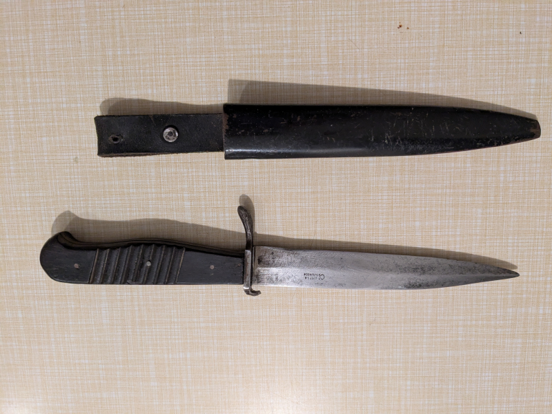 Die Klingenlänge beträgt ca. 14,5 cm, sie ist geschärft und beschliffen.