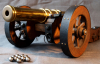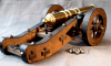 Biete ein eindrucksvolles Modell einer historischen Vorderlader-Feldkanone. Das knapp 30 cm lange Modell imponiert durch sein, im reinsten Wortsinn, strahlend schönes Erscheinungsbild. Hierzu trägt in erster Linie das ausgesprochen Gold glänzende, ca. 20 cm lange Kanonenrohr bei. Es scheint sich um vergoldetes Messing zu handeln. Der 8 mm messende, saubere und glatte Lauf ist mit dem etwa 1,5 mm messenden Zündloch verbunden, was unser Geschützmodell beschussfähig macht. Das Rohr ist auf einer schöne gebeizten, massiven Eichenholzlafette montiert. Die Lafette verfügt über solide, stählernen Beschlagwerke und ebenso ausgeführte Schildzapfenschlösser. Das hübsche Geschütz verfügt über eine sog. Richtmaschine – also eine Spindel, die für die Höhenjustierung des Rohres zuständig ist. Es handelt sich um ein ausgesprochen schönes und „glanzvolles“ Modell eines historischen Kanonentyps. Da das Rohr beschussfähig ist, findet ein Verkauf nur an volljährige Personen statt.