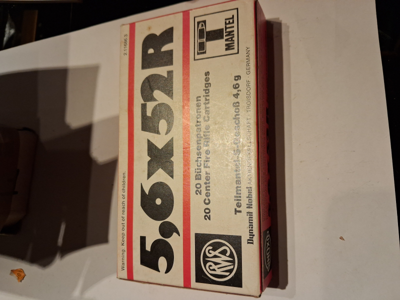 Hallo Servus, verkaufe hier für einen 90 Jährigen Freund, Jäger Schützenkameraden seine RWS Munition 5,6x 52R 20Stück , Teilmenge-S-Geschoss, Siehe Bilder Privatverkauf keine Garantie oder Rückgabe!