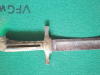 Badischer Hirschfänger zur Jägerbüchse System Wild. Eckiger Messinggriff mit langem Kasten, Drückerfeder fehlt. Messing von Griff und Parierstange fleckig. Klinge mit beidseitiger Hohlbahn, keine Herstellerzeichen vorhanden. Klinge fleckig mit Narben. Privatauktion ohne Gewährleistung, keine Garantie, keine Rücknahme.