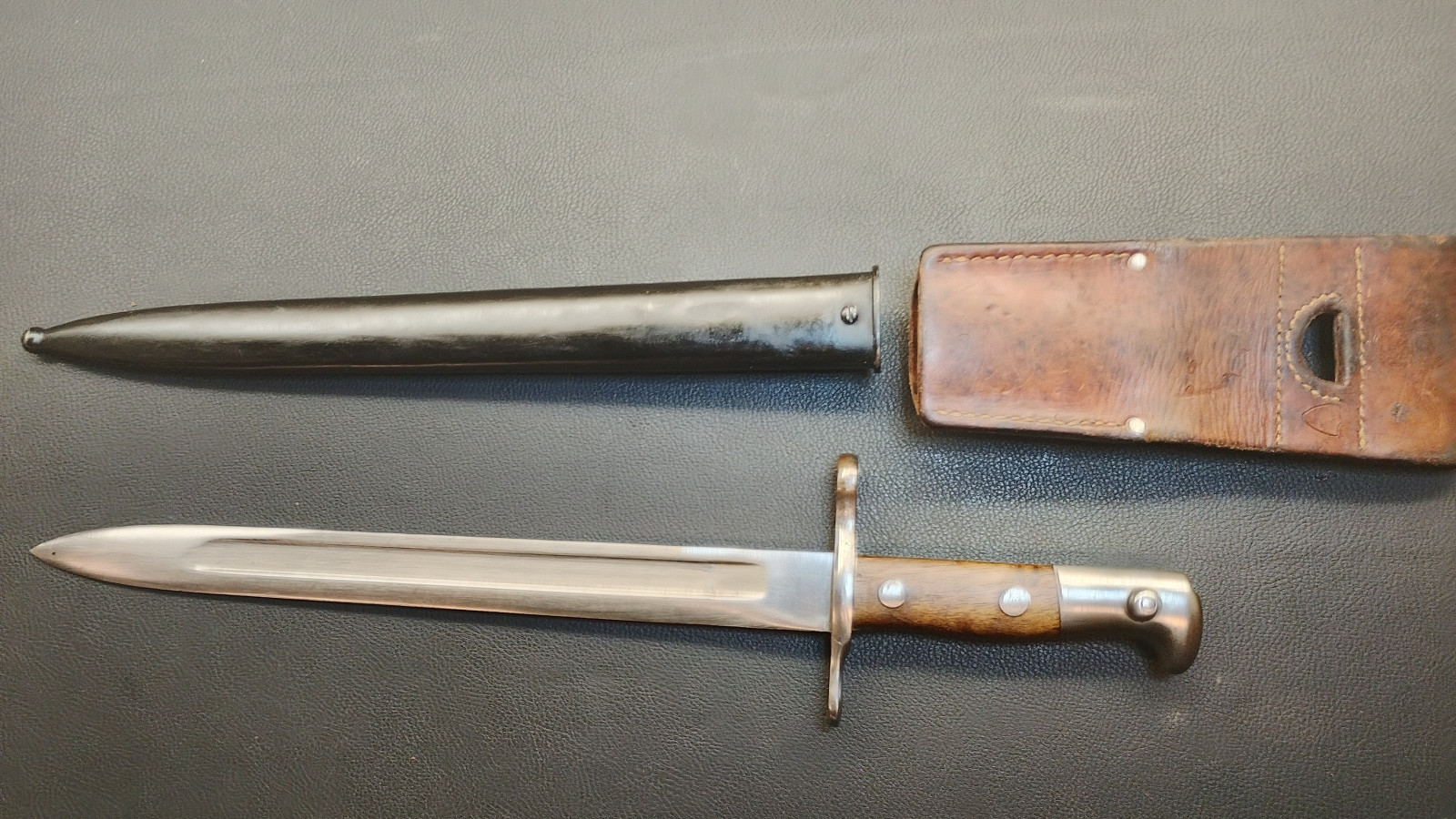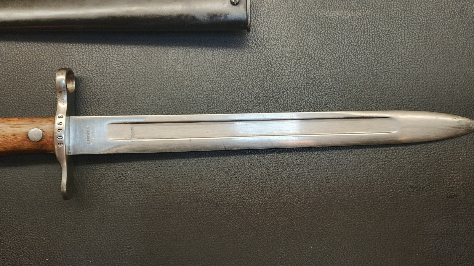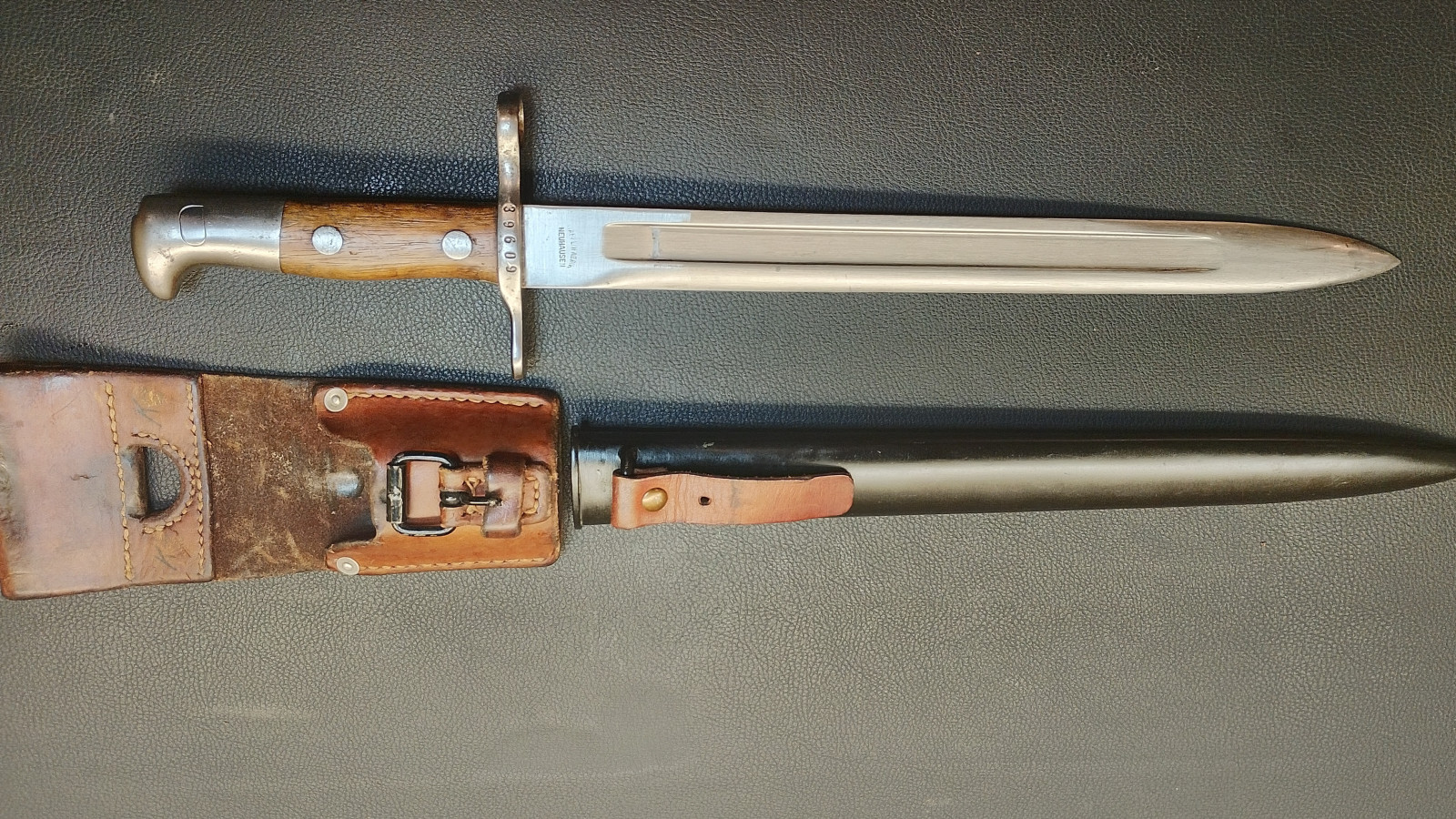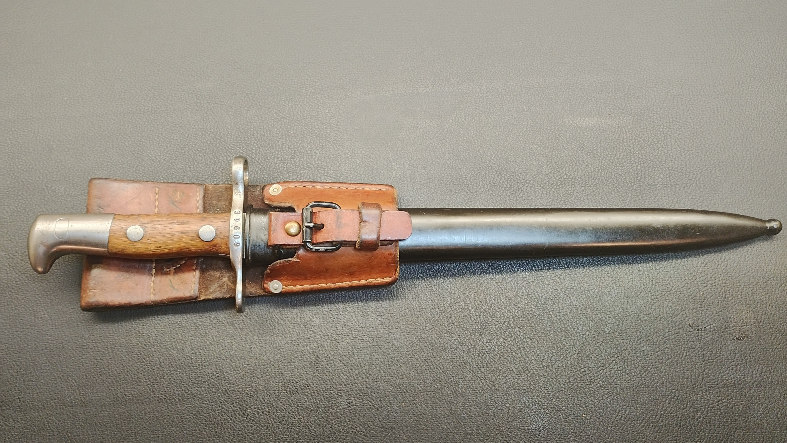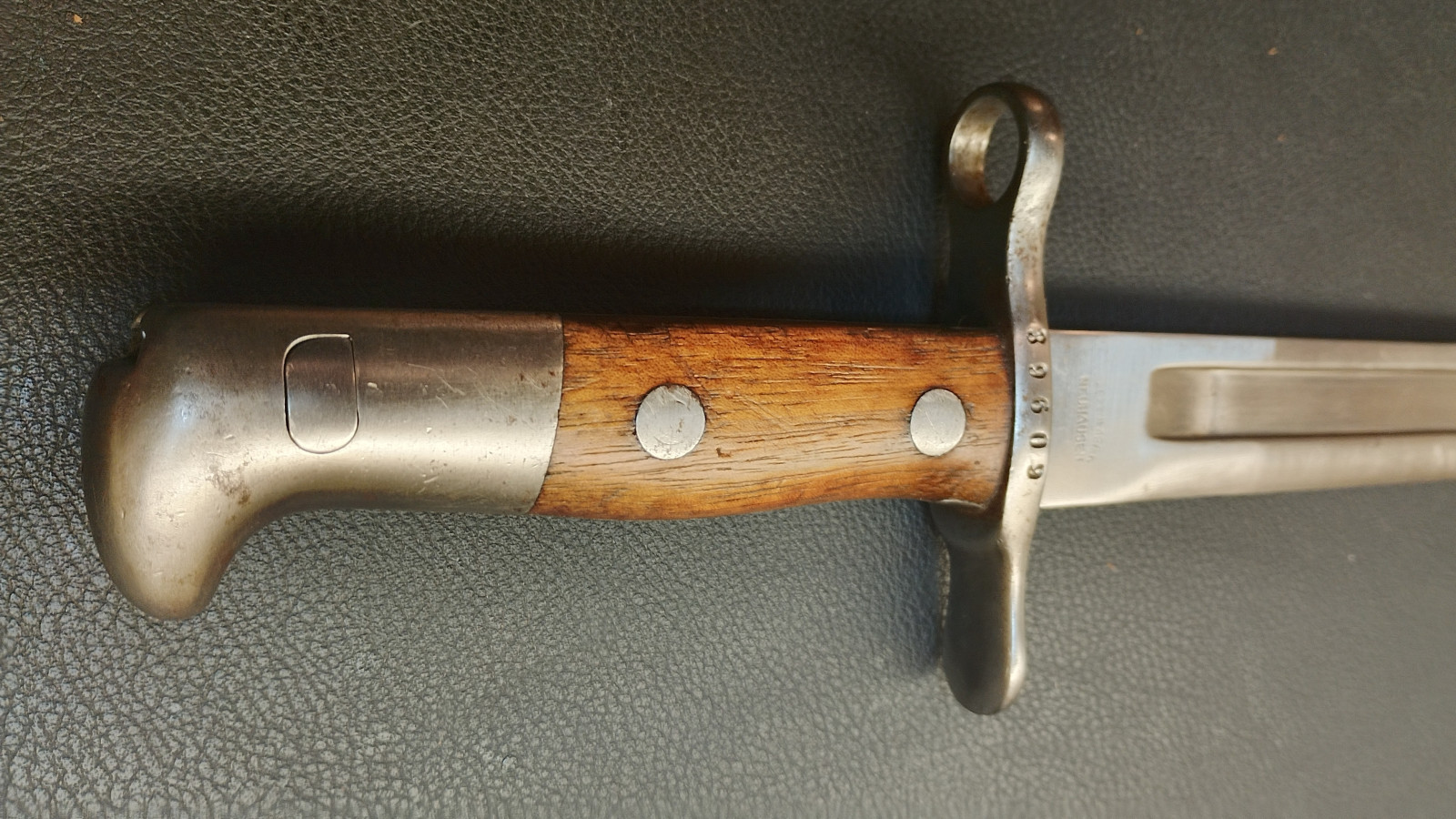 Verkaufe aus meiner Sammlung : Schweizer Bajonett Modell 1898 mit Koppelsch, Drücker leichtgängig , Klingenlänge 29,5 cm,Gesamtlänge ohne Scheide 41,8 cm. Erhaltungszustand ist Ansichtssache . Bitte schätzen Sie den Zustand des angebotenen Artikels anhand der Bilder selbst ein . Bilder sind Gegenstand der Auktion