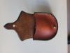 Selling ball bag for muzzle loader lead balls, leather, handmade, new and unused. The bag has a belt loop and is modeled after models from the American Civil War.