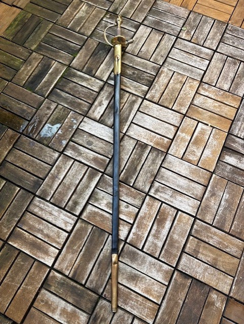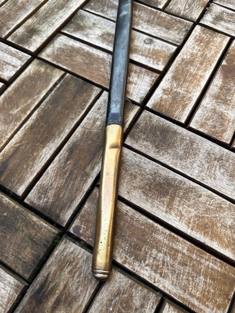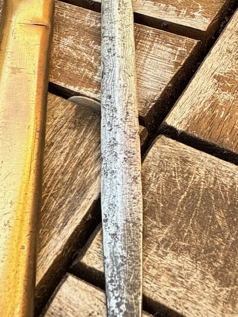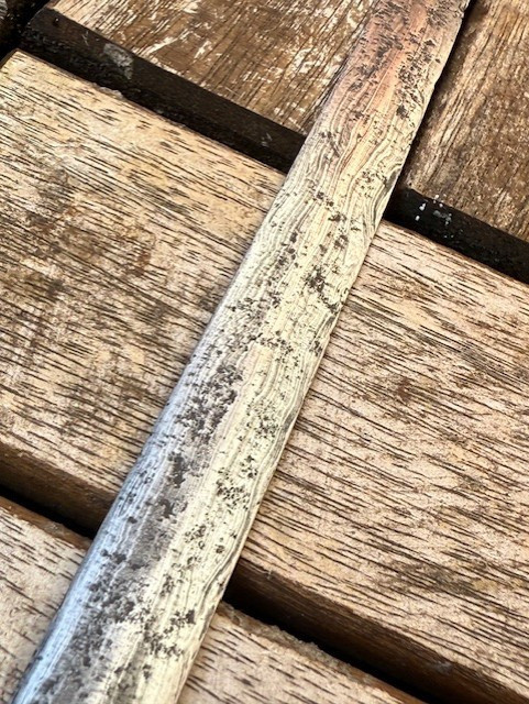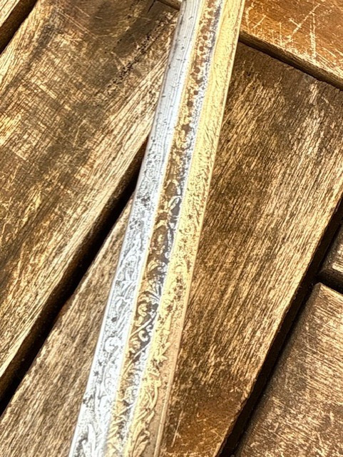 Eisenhauer Damaststahl .Gesamtlänge 101 cm, Klingenbreite 25 mm. Um 1870.