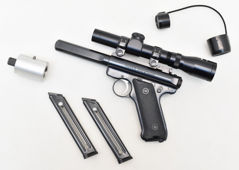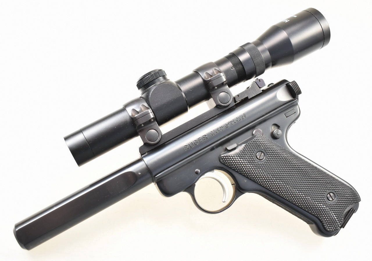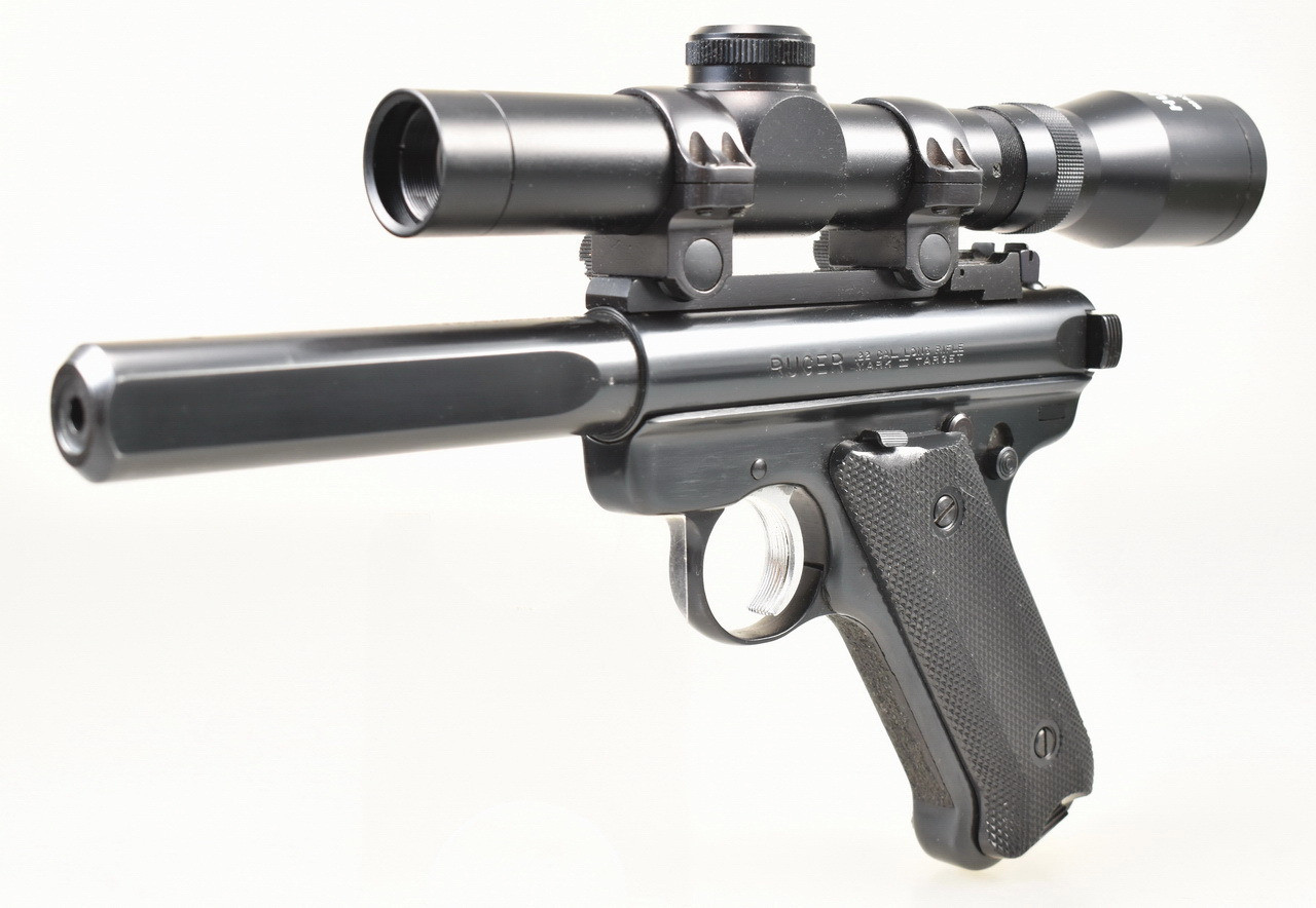 Pistole 5,5" R U G E R Mark II " Target " Kaliber .22 LR mit 2,5x Zielfernrohr