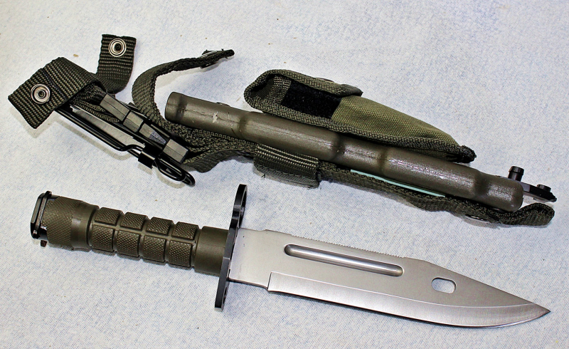 18cm Klinge aus bestem Kohlenstoffstahl mit Säge und Vorrichtung zum Zusammensetzen mit der Scheide zur Drahtschere - Rutschfester Griff aus Aluminium mit angeschraubten Bajonettaufpflanzvorrichtung M16
