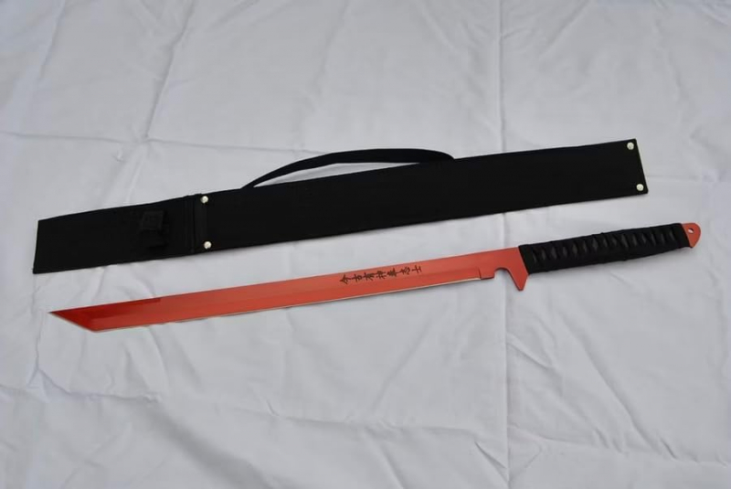 Klinge 440er Edelstahl Gesamtlänge Schwert 69 cm Gewichte: 431 g Nylon-Saya, inklusive Trageriemen Klinge ist angeschliffen /Scharf.