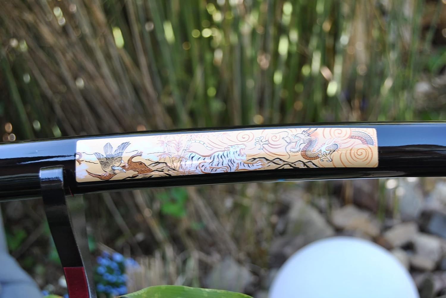 Handgeschmiedete Gefaltetes Damaszener TIGER Katana Schwert . von Hand geschmiedeter 1045 Kohlenstoffstahl Gesamtlänge: 105 cm Klingenlänge 72cm,Grifflänge 29cm. Gewicht mit Saya : 1300 gr, Gewicht ohne Saya:1100 gr, lackierte Holz Saya Griffumwicklung aus Baumwolle ist traditionell angebracht das Schwert ist scharf geschliffen Ohne Ständer.