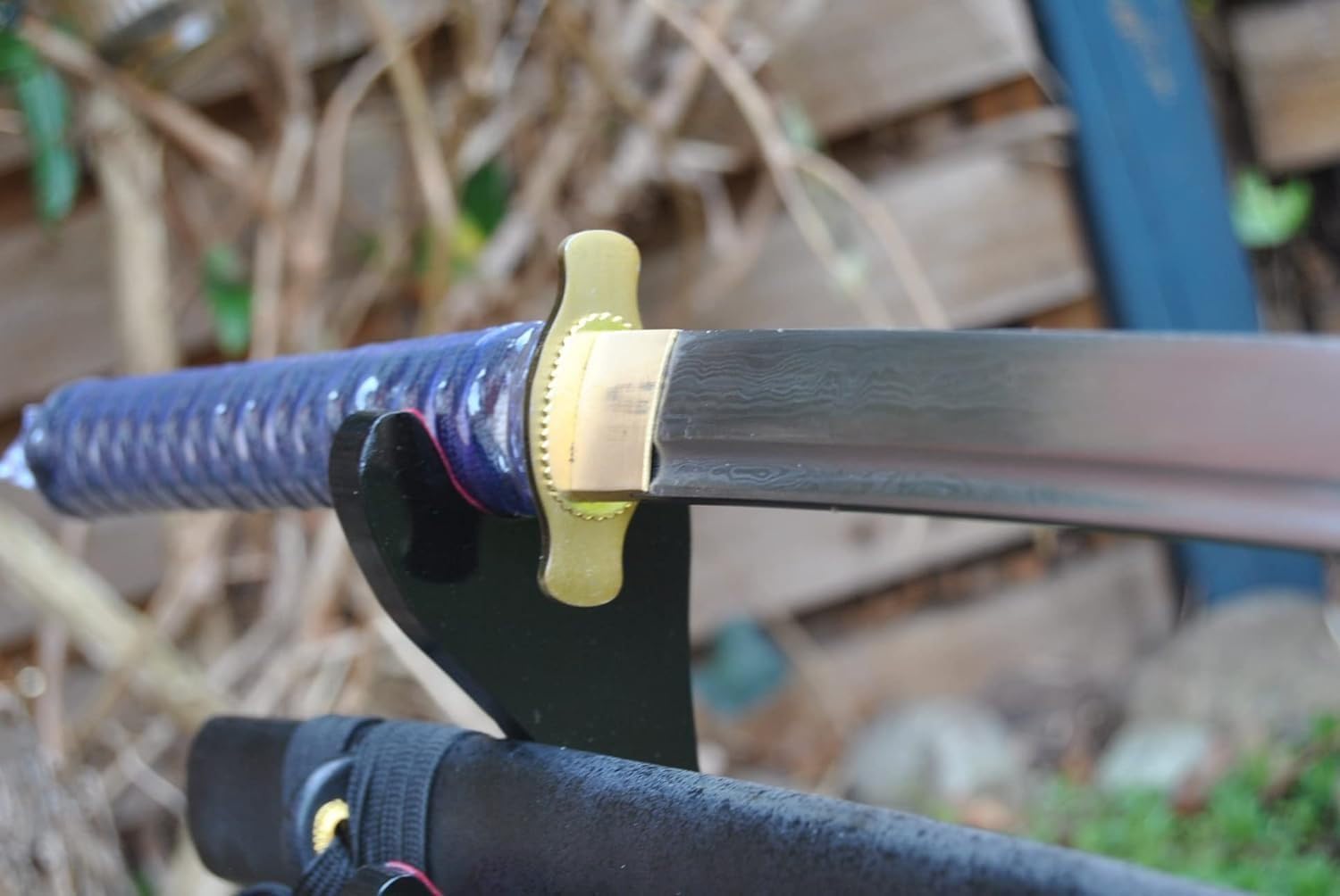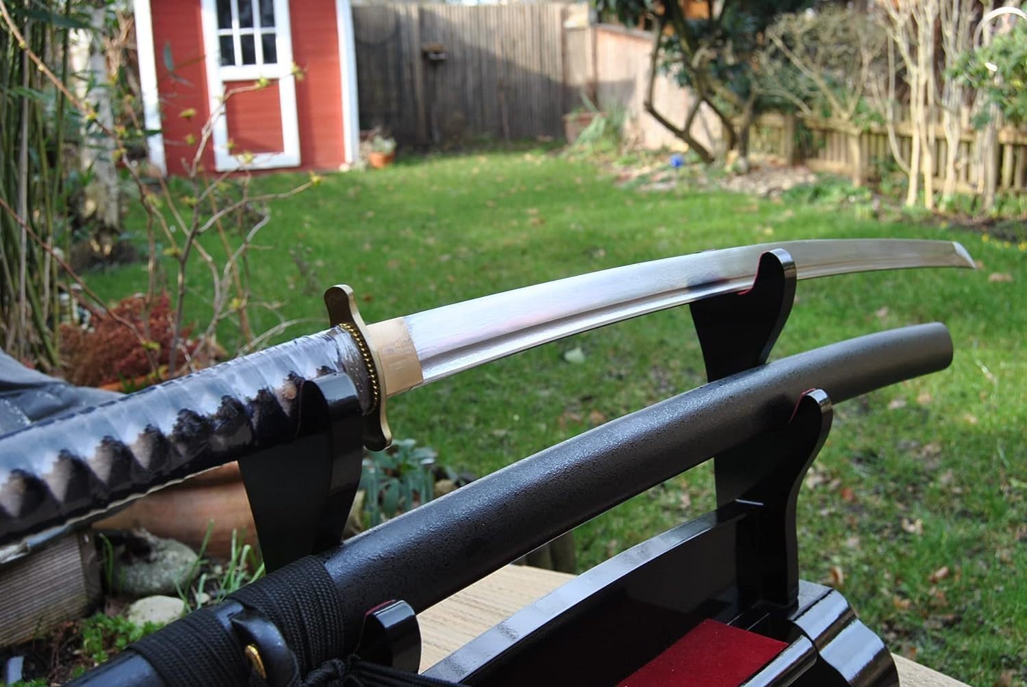Shiro Handgeschmiedete Gefaltetes Bushido Katana Schwert . von Hand geschmiedeter .Gesamtlänge: 105 cm Klingenlänge 72cm,Grifflänge 28,5cm. Gewicht mit Saya : 1320 gr, Gewicht ohne Saya:1100 gr, lackierte Holz Saya Griffumwicklung aus Baumwolle ist traditionell angebracht das Schwert ist scharf geschliffen Ohne Ständer.