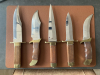 Die Messer und auch die Scheiden weisen Gebrauchsspuren auf, teilweise fehlen die Gürtelclips