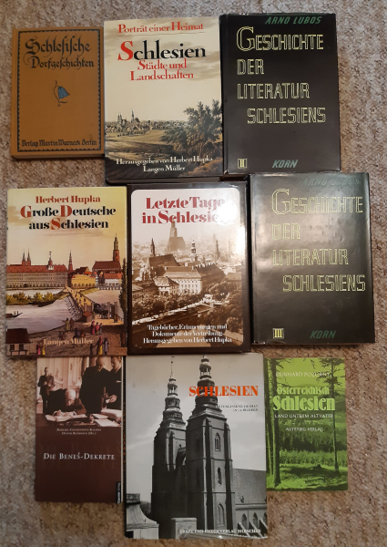 verkaufe 9 Bücher im Zusammenhang mit Schlesien aus Nachlass, verkaufe NUR alle komplett!...für weitere Infos bitte im Netz schauen, von der Thematik habe ich keine Ahnung. Gebrauchsspuren können vereinzelt vorhanden sein, manch Umschlag hat kleine Risse - also nicht NEU...