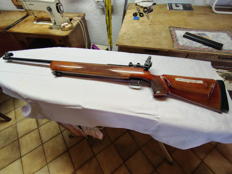 Trenne mich altershalber von meiner Matchbüchse, Modell Anschütz 54, Kaliber .22 lr. Das Gewehr hat altersbedingte entsprechende Gebrauchsspuren. Die Schussbelastung ist relativ gering, da ich seit Jahren nicht mehr damit geschossen habe. Ulmer Beschuss, daneben die Zahl 63, somit Baujahr 1963. Versand mit Overnight. Es ist natürlich auch eine Direktabholung vor Ort möglich.
