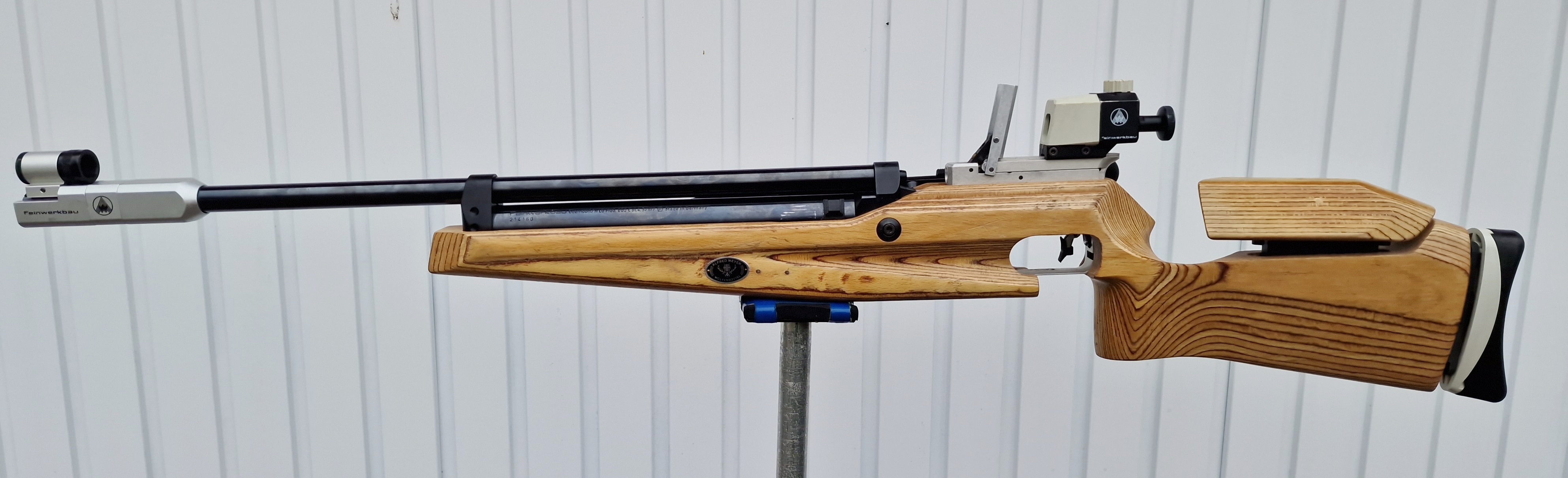 Achtung: Die Waffe ist mechanisch i.O., baut Druck auf, aber durch eine fehlende Dichtung am Kammerverschluss ist die Schussleistung schlecht. Das müsste überprüft werden. Dichtungen gibt es nachzukaufen.