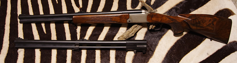 mit Keller & Simmann Einstecklauf, mündungslang von Vorne verstellbar, im Kaliber 8 x 75 RS (genutzt Doppelbüchse)