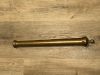 Das Material ist Messing, die 25 mm Bohrung ist 440 mm tief gebohrt, der Durchmesser ist hinten 60 mm und vorne 48,5 mm auf einer Länge von ca. 455 mm gemessen, die Gesamtlänge beträgt ca. 490 mm.