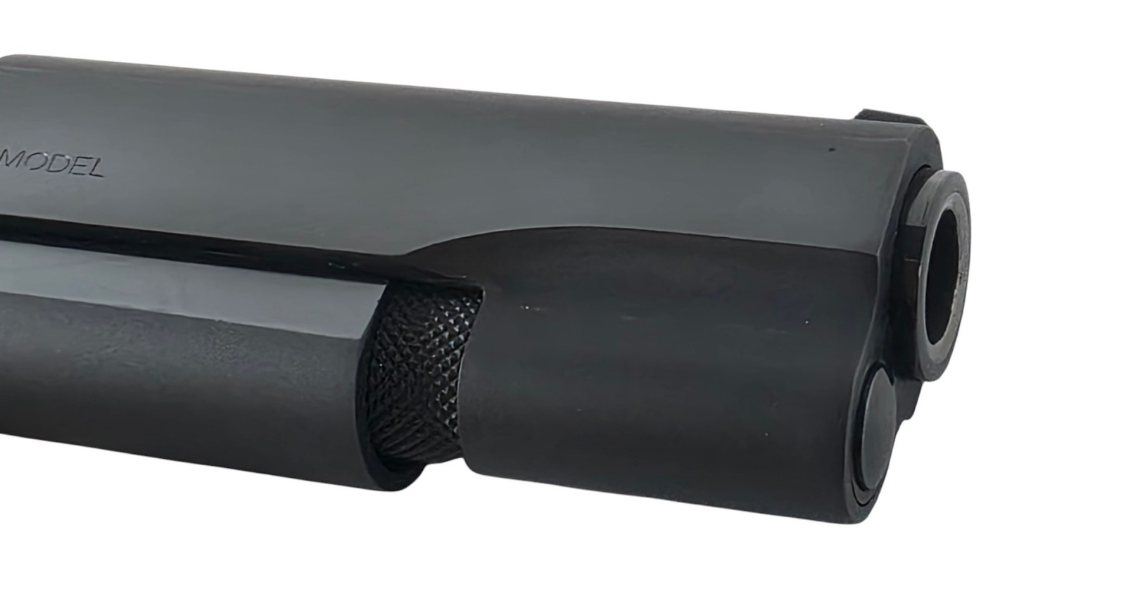 Info: Lauf und Schlitten vom bekannten Konstrukteur Walter Ludwig mit seinem speziellen konusförmigen Laufende aufwendig verfeinert. Der glockenförmige vordere Laufabschluss verriegelt absolut präzise und wackelfrei mit dem Schlitten. Das spart das Bushing und bringt mehr Präzision.