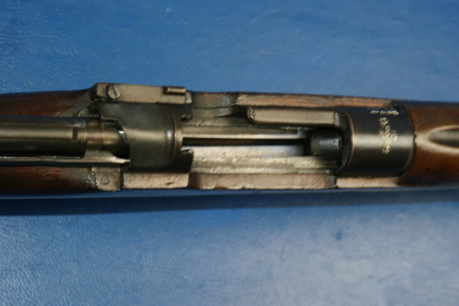 Bajonetthalterung fehlt, Magazin Mehrlader, Visier mit Schweißpunkt.. Lager- und Gebrauchsspuren.