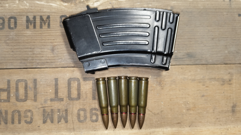 Dazu gehören 5 deko patronen im Kaliber 7,62x39.