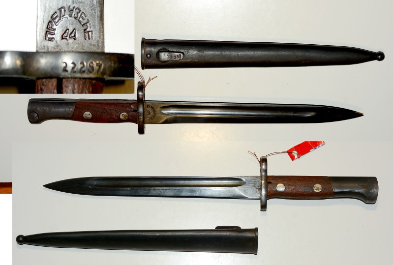 Jugoslawisches Bajonett Modell 1924, Klingenlänge 24,8 cm, nummerngleiche Scheide, guter Zustand