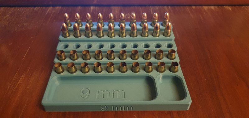 Ladebrett für 9 mm mit Fächer für Geschosse und Zündhütchen