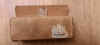 Schachtel intakt mit unten li. / re. Blecheinfassung, Aufkleber abgerissen, von dem nur noch kleines Fragment vorhanden.