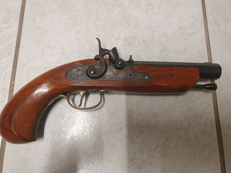 Zum Verkauf steht eine gebrauchte, voll funktionsfähige Vorderlader Perkussionspistole von Dikar, cal. 45 an.
