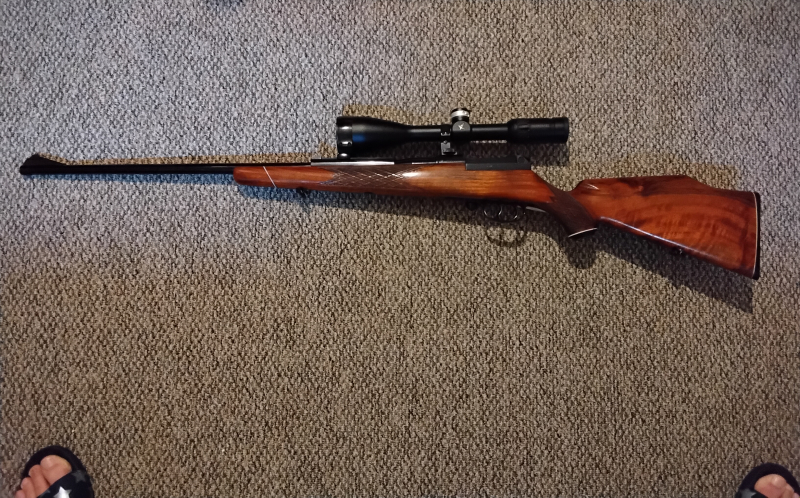 Ich biete hier eine Repetierbüchse Mauser 66, Mauserwerke Oberndorf/Neckar, Kaliber 7x64, klassischer Lauf, Kimme/Korn mit einem Zielfernrohr Swarovski Z3 4-12X50-L-BT [Absehen PLEX ohne Leuchteinheit] an. Die Büchse ist in einem guten Gesamtzustand mit geringen Gebrauchspuren. Die Zieloptik wurde nachträglich mittels einer Suhler Einhakmontage durch meinen Büchsenmacher montiert. Ich veräußere die Waffe wegen einer Bestandsreduzierung meiner Jagdwaffen ohne die Übernahme einer wie auch immer gearteten Garantie.