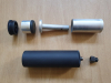 Geeignet zur praktischen Handhabung einer Selbstlade-Pistole sowohl im Freien als auch in geschlossenen Räumen ohne jegliche Gefahr durch Mündungsfeuer und Mündungs - Gasdruck. Eine zuverlässige Trainingshilfe für den sicheren Umgang mit einer SSR-Waffe im Kal. 9 mm P.A. Mit Bedienungsanleitung (deutsch/englisch), Sicherheits-Kompensator mit Gewinde M8x0,75, Adapter für M10. Mit weiteren Adaptern kann den Schalli auch an andere Laufgewinde befestigen, ich hatte einige von einem befreundeten Dreher anfertigen lassen. Es wird empfohlen, nur mit Knallpatronen zu üben. Gasmunition ist nicht geeignet. Länge: 120 mm Durchmesser: 35 mm Gewicht 140 g Dämpfungswerte: Mündungsfeuer: 100% Gasdruck: 100 % Knall: 37% Nachdem Röhm von Umarex übernommen wurden ist, wurden wahrscheinlich die noch vorhandenen Kompensatoren umgelabelt, sodass aus aus dem „Röhm“ ein „Umarex“ - Produkt wurde. Umarex stellte einen neueren, einfacher herzustellenden Kompensator mit einer Dämpfungsmasse aus einem Stahlwollegeflecht her, der an der Vorderseite zusätzliche Bohrungen neben der mittigen Laufbohrung besaß.