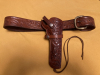 Hier versteigere / verkaufe ich einen Leder-Westerngürtel mit Holster für einen Single Aktion Revolver Cal. 45, mexikanische Handarbeit der Firma VIKING 710068 in einem guten Zustand ( 2+ ), mit Blumenornamenten passend zum Gürtel. Gürtellänge von ca. 75 cm - ca.95 cm, Breite ca. 4,5 cm. Kleine Lederschlaufe für Befestigung am Bein. Privatverkauf. DHL-Versand innerhalb Deutschland.