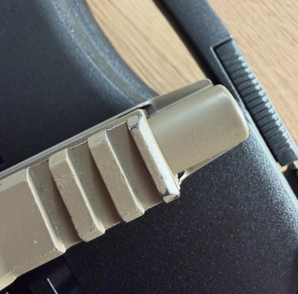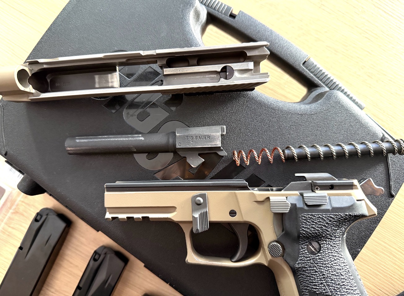 Die Sig hat knapp 500 Schuss gesehen und ist in einem guten Zustand. Kleinere Abnutzungen an der Beschichtung, was leider normal ist.