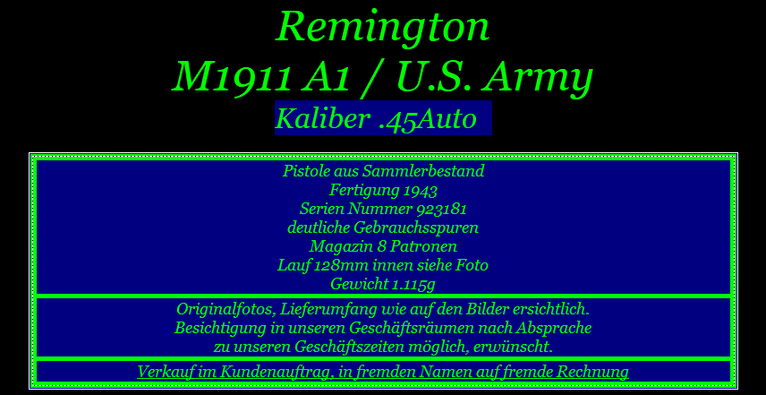 Remington M1911 A1 US-Army 1943 Kaliber .45Auto
