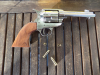 Verkaufe hier ein sehr schönes Modell - nicht schussfähig(!)- eines 1873er Colt Peacemaker in verchromter Zinkdruckgussausführung im cal .45 mit dazu passenden Dekopatronen , 10 Stück,- davon sechs in der Trommel! Sowohl die Waffe wie die dazugekauften Patronen sind absolut neuwertig! Ein typischer Single Action Revolver, wobei der Fingerabzug zum Leerabschlagen erst nach vorherigem Zurückziehen des Spannhahns funktioniert! Der Revolver verfügt zudem über einen Patronenhülsenauswerfer und wird mittels einer auf der rechten Seite befindlichen Ladeklappe geladen, da es zu damaligen Zeiten noch keine ausschwenkbare Trommel bei diesen Waffen gab! Zudem wurde der Colt mit Holzgriffschalen ausgestattet, was für mich den Sammlerwert noch erhöht und den Peacemaker authentischer macht! DENIX gibt sich sehr viel Mühe um Detailgenauigkeit bei diesen Modellwaffen! Es gibt hier allerdings keine Rücknahme oder sonstige Gewährleistungen, da von privat angeboten! Keinerlei Funktionsstörungen vorhanden! Mitgeliefert werden die Dekopatronen und die OVP! Gewicht: 938g !
