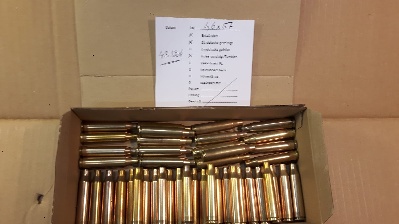 43 Hülsen RWS 5,6 x 57, 1x geschossen, nicht wiedergeladen, entzündert, gereinigt.
