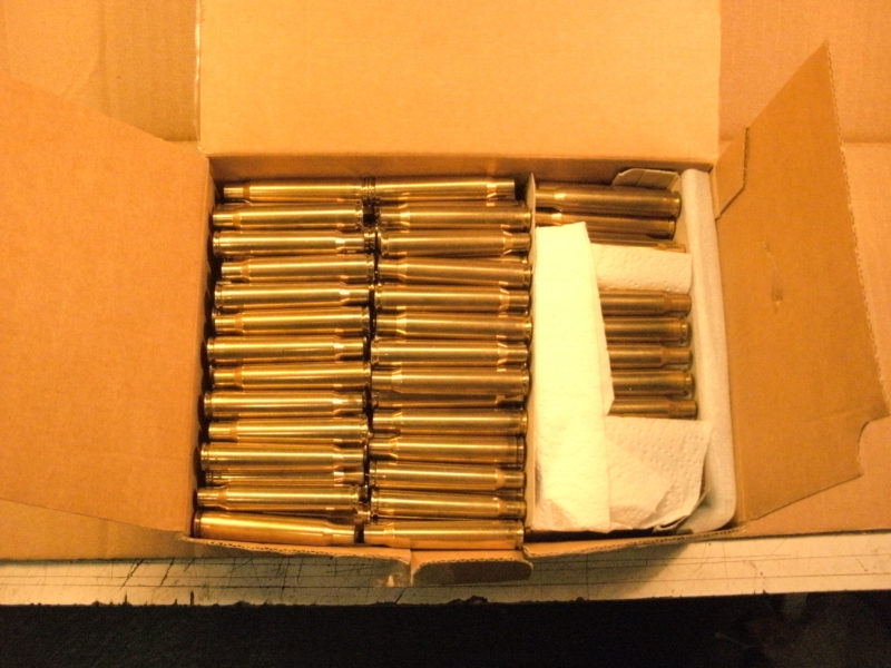 150 Hülsen 7 x 64, 1x geschossen, nicht wiedergeladen, entzündert, gereinigt.