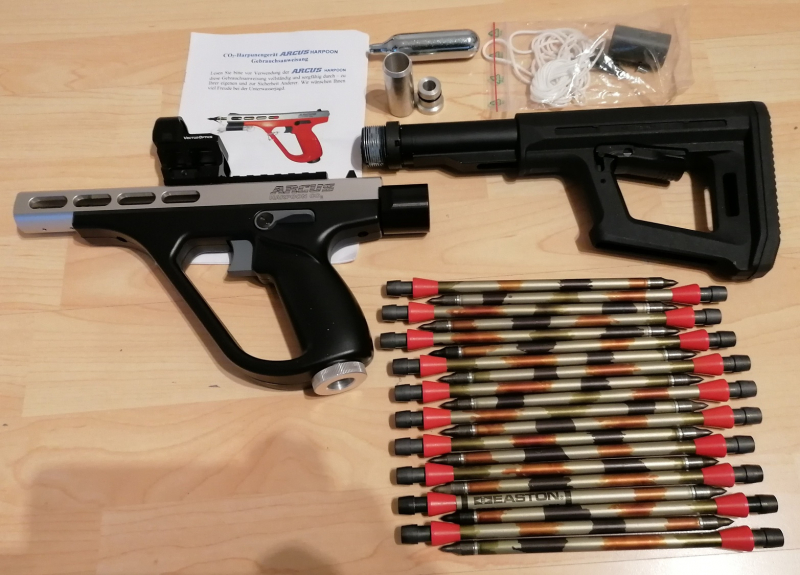 Verkaufe kaum genutzte Harpune (war nie im Wasser, nur im Trockenen getestet). In Deutschland frei erwerbbar ab 18 Jahren (Altersnachweis erforderlich - https://www.bogensportwelt.de/ARCUS-Harpoon-Unterwasserharpune). Kommt im originalen Koffer/Lieferumfang und zusätzlich mit Picatinny Schiene, Adapter für kleine CO2 Kartuschen, Adapter für AR-Schäfte, insgesamt 20 Pfeilen(!) und 6 großen Kartuschen. Leider habe ich das Korn verloren - Ersatz lässt sich aber sicher leicht finden. Reddot, Buffer Tube und Schaft gehören nicht zum Angebot. Es handelt sich um einen Privatverkauf und ich schließe jedwede Garantie, Gewährleistung, Rückgabe und/oder Preisreduzierung aus. Die Zahlung muss innerhalb von 5 Werktagen nach Auktionsende erfolgt sein (paypal nur als F+F möglich!). Versandkosten gelten für D ohne Inseln, andere Destinationen bitte anfragen. Bitte stellen Sie Ihre Fragen, bevor Sie ein Gebot abgeben, mit Ihrem Gebot erkennen Sie die vorgenannten Bedingungen rechtsverbindlich an!
