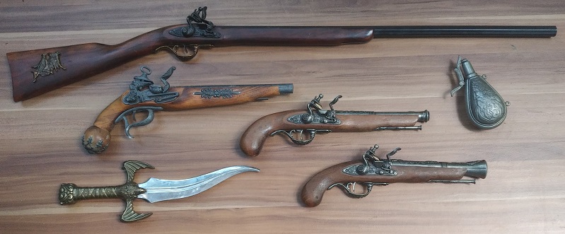 Auf Grund der Verkleinerung meiner Sammlung, bietet sich hier die Gelegenheit, ein dekoratives Set nicht schußfähiger Vorderladerwaffen zu erwerben, schreiben Sie mich gern an, der Preis ist in gewissen Rahmen verhandelbar: