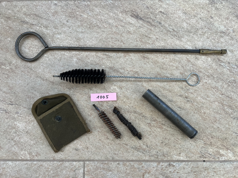 Sie bieten hier auf ein Reinigungsset für die MP Thompson 1928A1 / M1 / M1A1 der US-Army. Guter Zustand mit Lagerspuren, siehe Foto. Der Öler kommt hinten in den Schaft der Thompson MP. An den Stücken haftet noch das originale Konservierungsfett. Das abgebildete Set wird auch geliefert.
