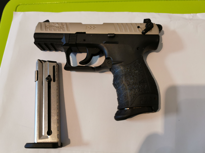 Walther P22 mit vernickelten u. gebürsteten Schlitten