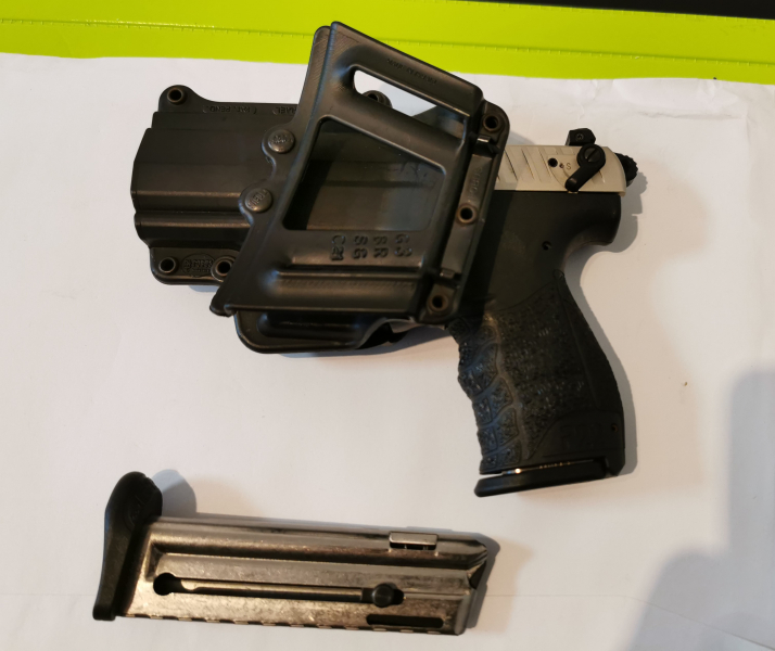 Verkaufe meine wenig geschossene Sportpistole Walther P22 im Kaliber .22 lr (= .22 lfb) aus dem Hause Carl Walther Ulm a.d. Donau samt einem Plastik-Gürtelholster (siehe Bilder)
