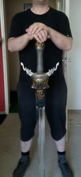 Vollmetall, ist klar, aber nicht gehärtet - Bitte beachten, nicht für Showkämpfe usw. geeignet !!! Zur Beachtung., die Hörner wurde wie auf dem letzten Bild andersrum montiert und admit quasi etwas zur Seite gedreht, da man es so besser halten konnte...