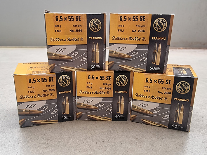 Biete 225 Schuss im Kaliber 6,5x55 SE FMJ für Schwedenmauser des Herstellers Sellier & Bellot. Das Geschossgewicht beträgt 8g bzw. 124grs.