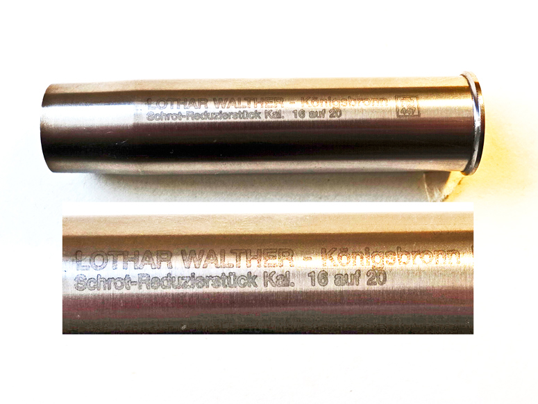 Biete hier eine Schrot Reduzierstück (Reduzierhülse) Kal. 16 auf 20 an, von Lothar Walther Königsbornn an, beste Qualität ohne zu Verklemmen. Versand 3€, auch Abholung nach Absprache möglich. Käufer trägt Versandspesen. Kein PayPal.