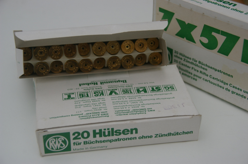 Es werden hier pro Sofortkauf 60 Stück 7x57R Hülsen des Herstellers RWS mit dem Bodenstempel RWS angeboten. Die Hülsen sind fabrikfrische ungeschlossene und nicht geladene Hülsen von RWS. Die Verpackungen weisen Lagerspuren auf. Die Hülsen sind aus einem Los!!