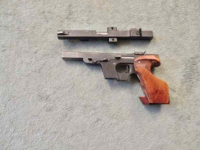 Sportpistole Fabrikat Walther, Mod. GSP, .32S&WLong WC und Wechselsystem, .22lr. Es fehlen die Magazine. Tauchen evtl. noch auf. Beschuß IA.