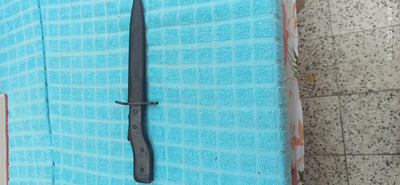 Not Bayonett, Grabendolch? , sehr alt, Metallgriff, Drücker leichtgängig, Scheide rostnarbig, an der Lederschlaufe fehlen die Dolchhalter.