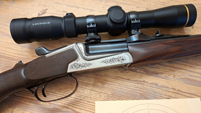 Sehr schöne Heym Kipplaufbüchse im Kaliber 8x57IRS, sehr feine Randstichgravur von Heym, top Schaftholz, sehr gute Schußleistung, Waffe kaum geschossen. Ca.50 Schuß.