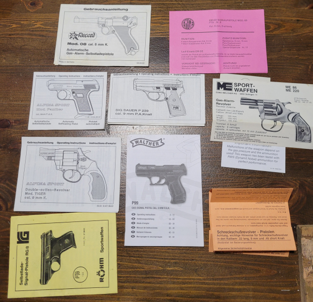 Sie bieten hier auf diverse Beschreibungen für Schreckschuss Waffen, wie auf den Bildern zu sehen.