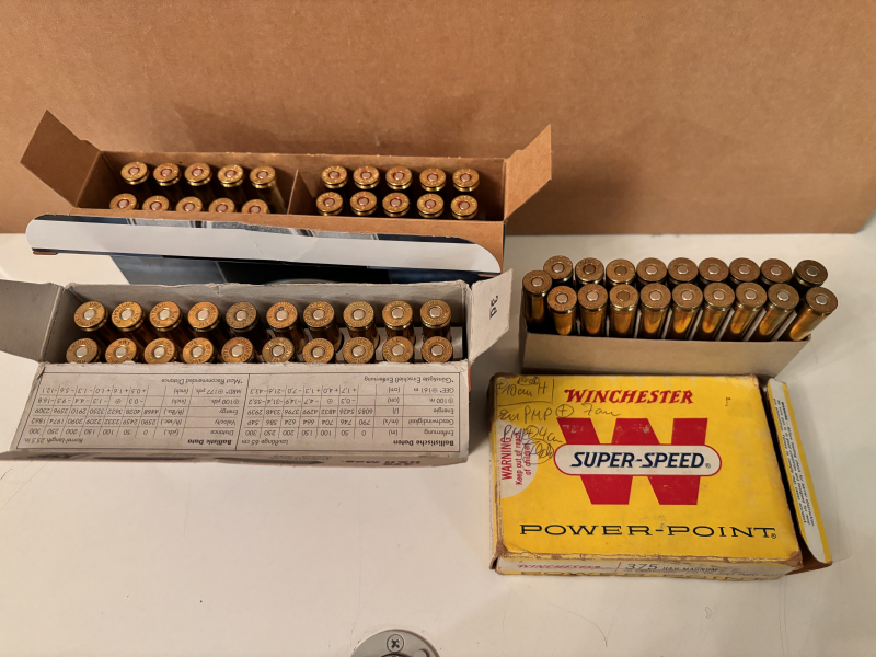 Angeboten werden 59 Stück Patronen im Kaliber .375 H&H Magnum. Es sind verschiedene Hersteller so Federal, Winchester und Dynamit Nobel. Der Zustand ist meiner Meinung nach sehr gut. Den Rest entnehmen Sie bitte den Foto´s. Es ist keine Neuware. Bei Fragen können Sie sich gerne melden. Da Privatverkauf, keine Garantie, Gewährleistung, Umtausch oder Rücknahme .