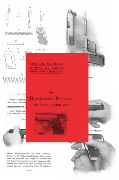 Nachdruck in deutscher Sprache der Bedienungsanleitung für die Pistole FN 1906 Offiziersmodell im Caliber 6,35 mm, 24 Seiten, viele Abbildungen. A6-Format