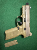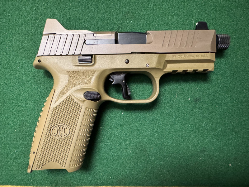 Die Pistole ist mit der Low-Profile-FN-Schnittstelle für Optiken ausgestattet, sodass der Schlitten mehr als zehn handelsübliche Miniatur-Rotpunktvisiere (MRD) aufnehmen kann, die auf die Visierung abgestimmt sind und das Visieren mit Schalldämpfer ermöglicht. Außerdem ist eine Anpassung an künftige Optik-Versionen möglich, ohne dass der Schlitten direkt gefräst werden muss. Die Schlittenabdeckung, die angebracht wird, wenn keine Optik vorhanden ist, ist mit Verstärkungen versehen, die die Ausrichtung des Visiers im Falle eines Sturzes oder Aufpralls schützen, und dient als strukturierte Rampe zum einhändigen Spannen, indem der Schlitten gegen eine Gürtelschlaufe, eine Hosentasche oder einen Stiefel gedrückt wird.