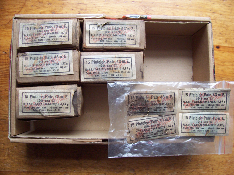 Ohne Patronen oder Ladestreifen . Etiketten teils aber noch in gutem Zustand .